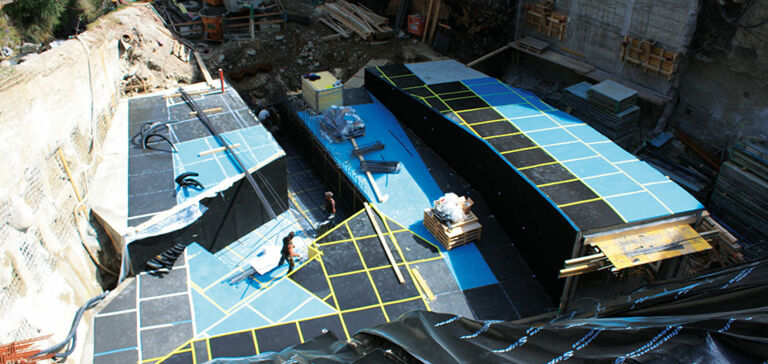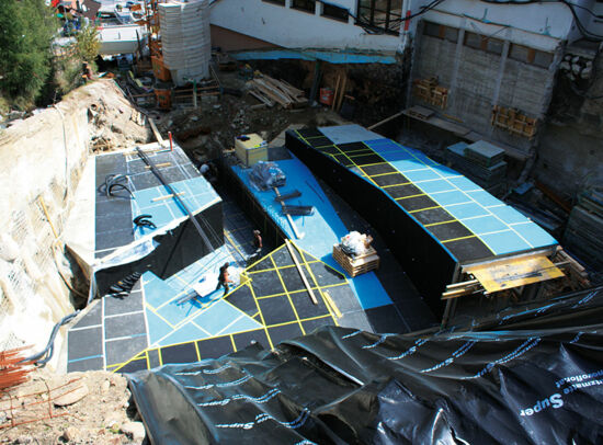 - Schwingungsisolierung zum Schutz des direkt angrenzenden Schulgebäudes und der Hotelbetriebe
