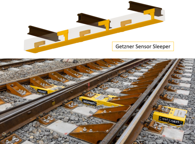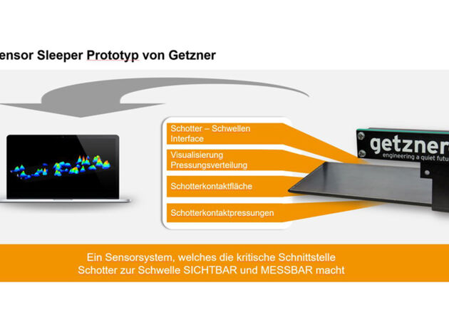Getzner hat die sogenannte „Sensorschwelle“ entwickelt, die es ermöglicht, ohne Eingriff in die Eigenschaften des Gleises Flächenpressungen direkt am Einsatzort der Schwellensohlen zwischen Schwelle und Schotter zu messen. Dabei handelt es sich um einen speziellen Drucksensor, der auf der Unterseite der Schwelle angebracht wird. Der Druck, den einzelne Schottersteine auf die Schwelle ausüben, kann über lange Zeit erfasst werden. Dies ermöglicht es, nicht nur die Eigenschaften der Schwellenbesohlung mit nie dagewesener Genauigkeit zu charakterisieren, sondern darüber hinaus die Lastabtragungseigenschaften der verschiedenen Komponenten des Gleises bei Zugüberfahrt zu analysieren. Die gewonnenen Erkenntnisse können zum Beispiel in der Auslegung von Besohlungen, Schwellen, Weichen und Übergangsbereichen Verwendung finden. Die Eigenschaft, dass die Sensorschwelle wie jede andere Schwelle gehoben, ausgerichtet und gestopft werden kann, macht die notwendige Datenqualität erst möglich. Natürlich funktioniert die neue, digitale Innovation nicht nur in Kombination mit Schwellensohlen sondern auch ohne.