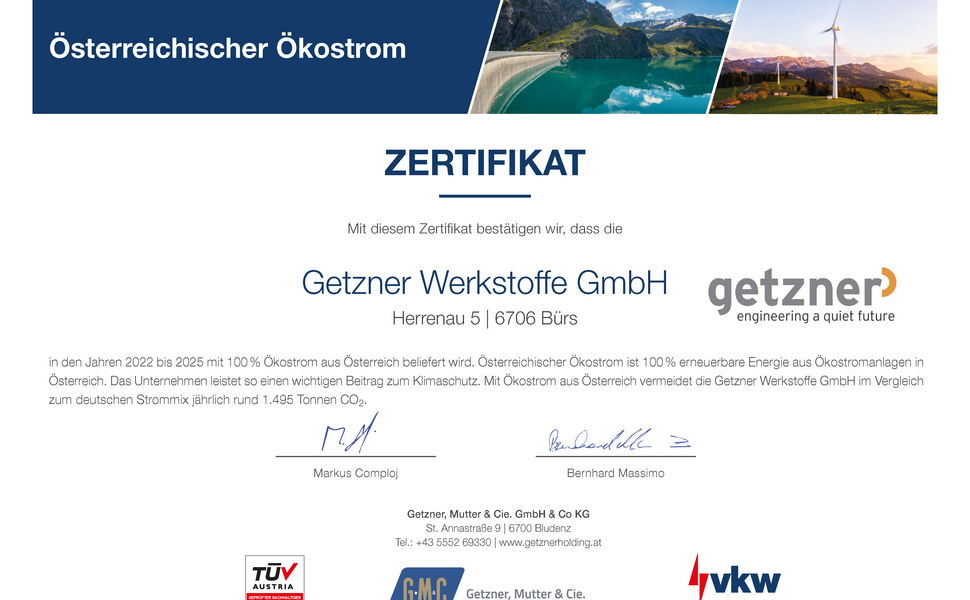 Schon heute unternimmt Getzner eine Reihe an Maßnahmen zum Erhalt der Natur und Schonung unserer natürlichen Ressourcen und engagiert sich in Organisationen, die an einer nachhaltigeren Zukunft arbeiten: Getzner ist Mitglied im Verein TUN. Green Deal Vorarlberg und bei respACT, Österreichs führender Unternehmensplattform für verantwortungsvolles Wirtschaften. Nachfolgend finden Sie eine Reihe an Beispielen aus unterschiedlichen Bereichen, die für unser Umweltengagement stehen.