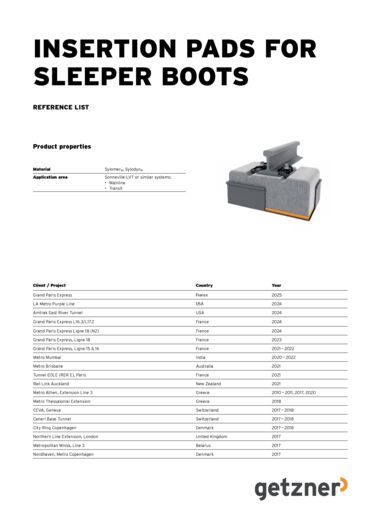 As Getzner insertion pads are available in any desired stiffness, it is perfectly possible to meet the most varied of requirements. The most frequent applications for this system are found in various types of tunnel sections.