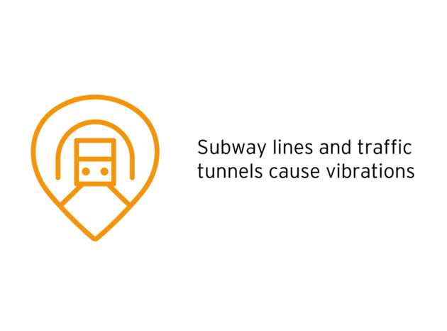 A frequently underestimated problem in city planning is noise generated by vibrations and shocks. Vibrations can impact the exterior and interior of the building and lead to disruptive noises. In addition to nearby sources of disturbance such as tramway lines, metro lines or inner-city traffic, technical equipment in the building such as air conditioning units or lifts can also have a negative impact in the form of noise. Subjective noise perception therefore not only depends on the volume - you only have to think of a dripping tap. The good news is that as a rule, structure-borne noise can be anticipated and noise is therefore preventable. Benefit from our expertise and gain more information as well as a sound assessment of the respective situation.