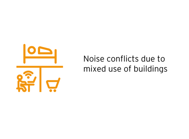 All these trends in city development are inevitably leading to noise conflicts. Noise is already one of the downsides of urbanisation. It affects quality of life, which leads to stress and is becoming hazardous to health. It can therefore be assumed that requirements for urban planning and noise control regulations in will be tightened in the near future.