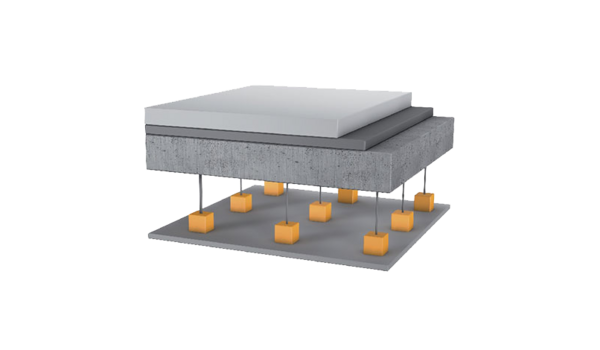 Getzner offers effective products for the elastic decoupling of suspended ceilings. With a natural frequency of ≤ 10 Hz, these allow a reduction of sound transmission even in the low frequency range. Compared to conventional attachment systems, the innovative products enable an improvement of the Ln,w +CI 50-2500 of up to 11 dB. A wide range of products enables the most diverse installation and mounting situations and offers the user the appropriate connection for the planned suspension system in each case.