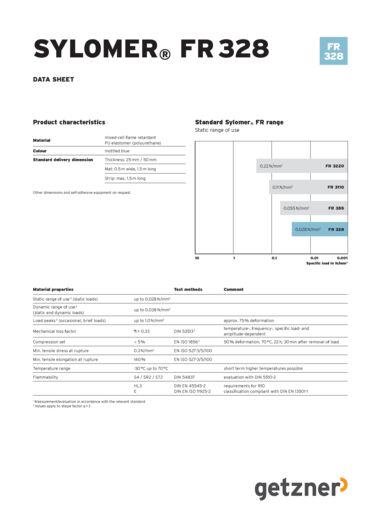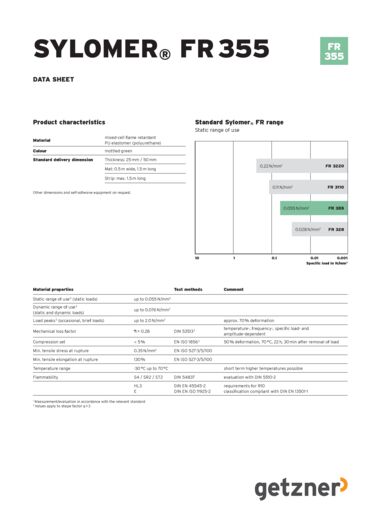 Sylomer® Fire-retardant (FR) with fire-retardant effect