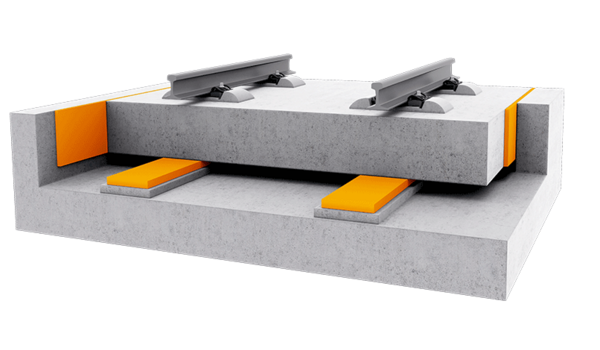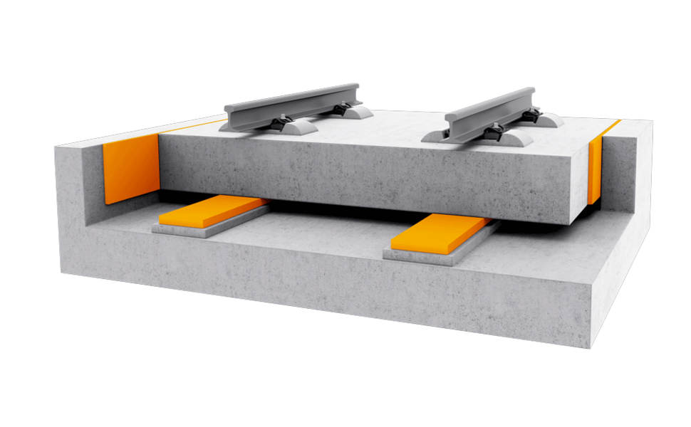 Getzner offers three variants for supporting mass-spring systems: full-surface, strip and point bearings. Which of these types to use depends on economic as well as technical considerations. The success that is achieved can be felt and heard. The lowest natural frequency achieved in the numerous mass-spring systems realised to date in local and long-distance railway lines is 5 Hz.