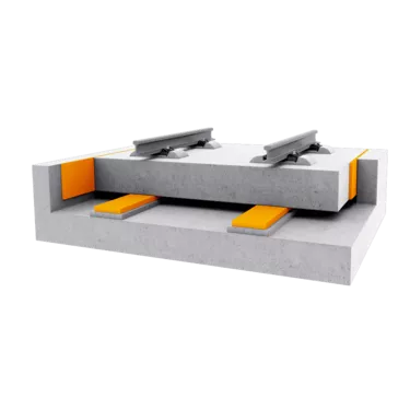 - Rigidités adaptées dans les zones de transition et installation de tapis latéraux pour le découplage de la dalle de voie