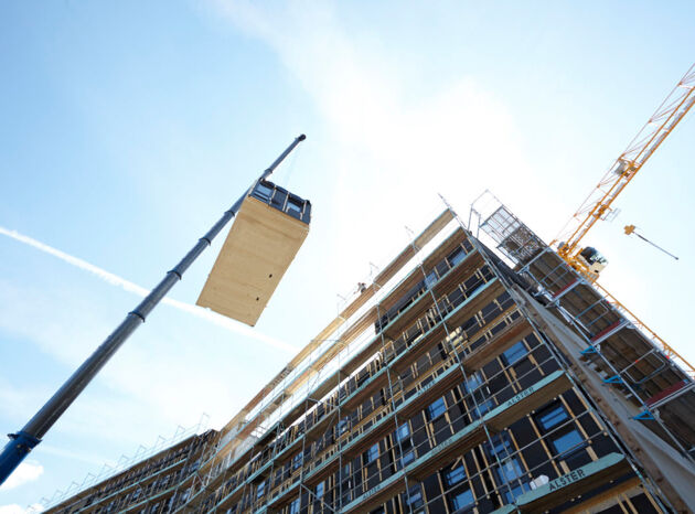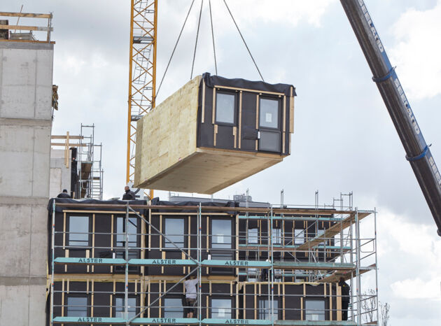 Per evitare la propagazione del suono tra le unità residenziali, i singoli moduli sono stati isolati con il Sylodyn® di Getzner. Il legno è stato scelto come materiale da costruzione per le sue caratteristiche ecologiche e il piacevole clima che crea all’interno degli ambienti. Per un isolamento acustico affidabile, i moduli sono già prefabbricati con bande elastiche Sylodyn®. “Nei moduli, il suono si diffonde principalmente tramite i bordi. Grazie all’isolamento elastico, possiamo impedire quasi completamente la propagazione del suono tra i rispettivi moduli”, spiega Hendrik Reichelt, project manager di Getzner.